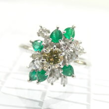 Ptブラウンダイヤモンドエメラルドリング A4506 送料無料